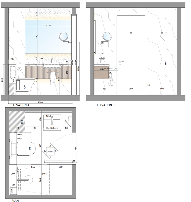 Work in progress 3-Star Hotel project in Country Galway, Ireland. Developing 3 different budget-friendly schemes and detailed technical drawings for bedrooms and en-suites.