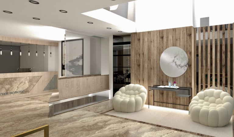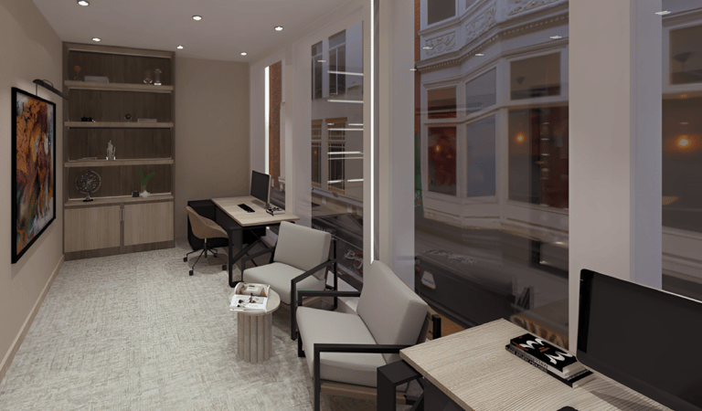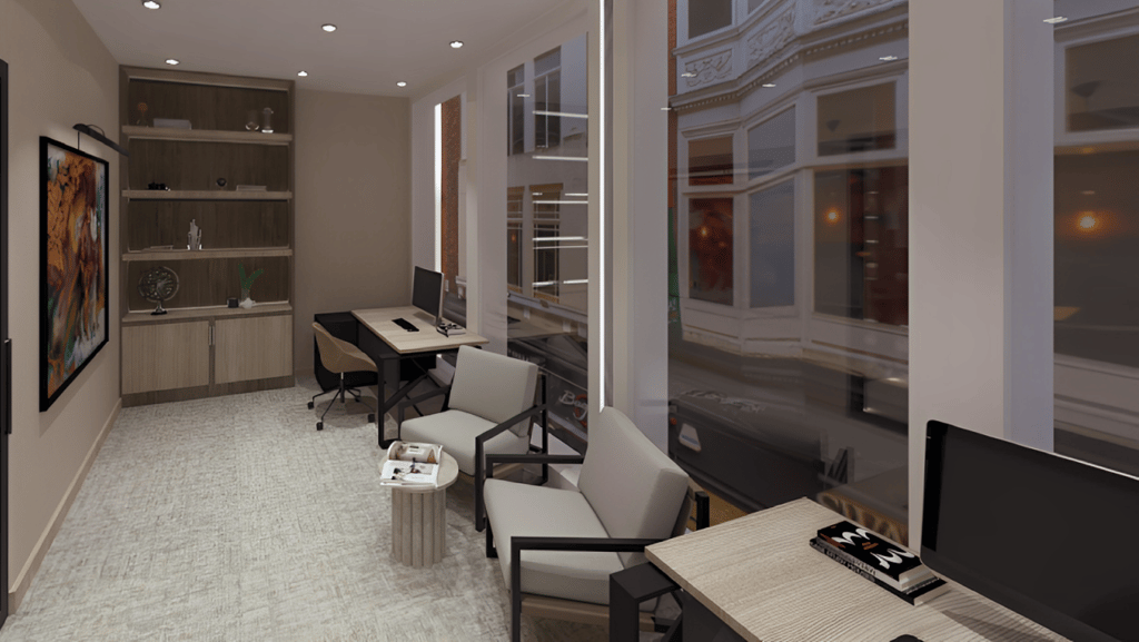 This project involves converting a Georgian retail unit in the city centre into a furniture retail showroom and office. While the building is not protected, adherence to Building Regulations for Interior Design is crucial. The design should reflect best practices, enhance branding, and appeal to clients. The design must comply with regulations, including the requirement for an enclosed fire escape staircase.