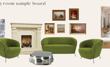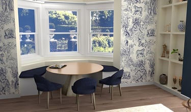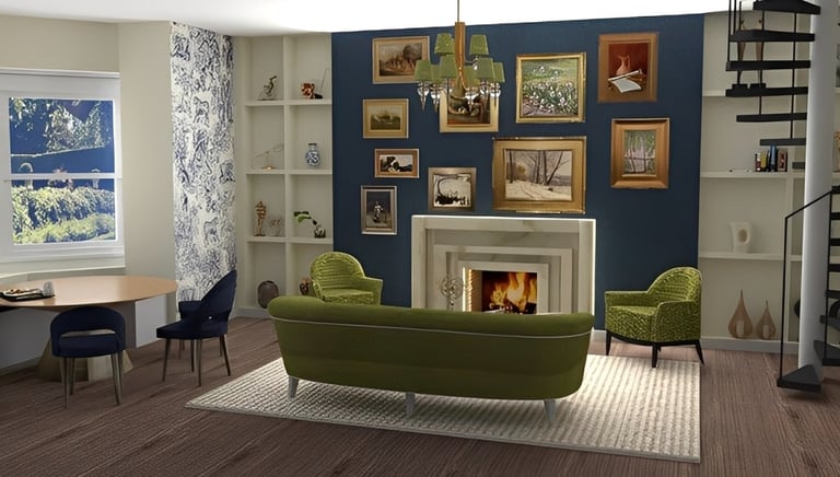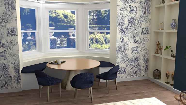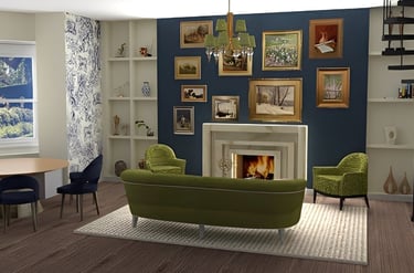 Victorian-era inspired apartment living room/dining area